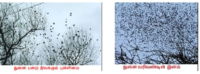இது பறவைகள் வாப்பறையாக மேலெழும் காட்சி. இன்னொரு காட்சியும் சங்க இலக்கியத்தில் நமக்குக் கிடைக்கிறது.அதற்குக் கொடுக்கப்பட்ட உவமை அழகினும் அழகு! அதைப் பார்ப்போமா?