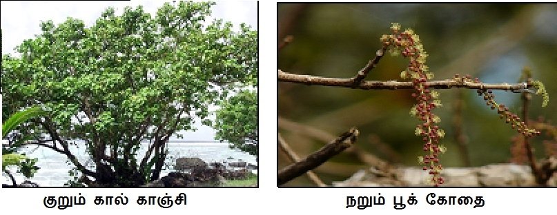 அடுத்ததாகப் பறவை அமர்ந்திருந்த மரத்தைப் பற்றியும் புலவர் கூறுகிறார். அது ஒரு காஞ்சிமரம்; இப்பொழுது அது ஆற்றுப்பூவரசு என அழைக்கப்படுகிறது. நீர்நிலைகளின் கரைகளில் இருக்கும். அதைக் குறுங்கால் காஞ்சி என்கிறார் புலவர். அதாவது சிறிய அடி மரத்தைக் கொண்டது அது. குட்டையான அந்த மரத்தின் கிளைகளில் சில நீரின் மேல் பகுதி மேலும் நீண்டிருக்கும். அப்போது அது நீருக்கு அருகில் இருக்கும். எனவே, அங்கிருந்து நீருக்குள் இருக்கும் மீன்களைப் பார்க்கவும், தக்க நேரத்தில் சீக்கிரமாய்ப் பாய்ந்து செல்லவும் அது மிக்க வசதி உடையதாக இருக்கும். எனவேதான் மீன்கொத்தி அந்த மரத்தின் கிளை ஒன்றைத் தேர்ந்தெடுத்தது. பறவைகளின் உளப்பாங்கையும் புலவர் அறிந்து வைத்திருக்கிறார்.